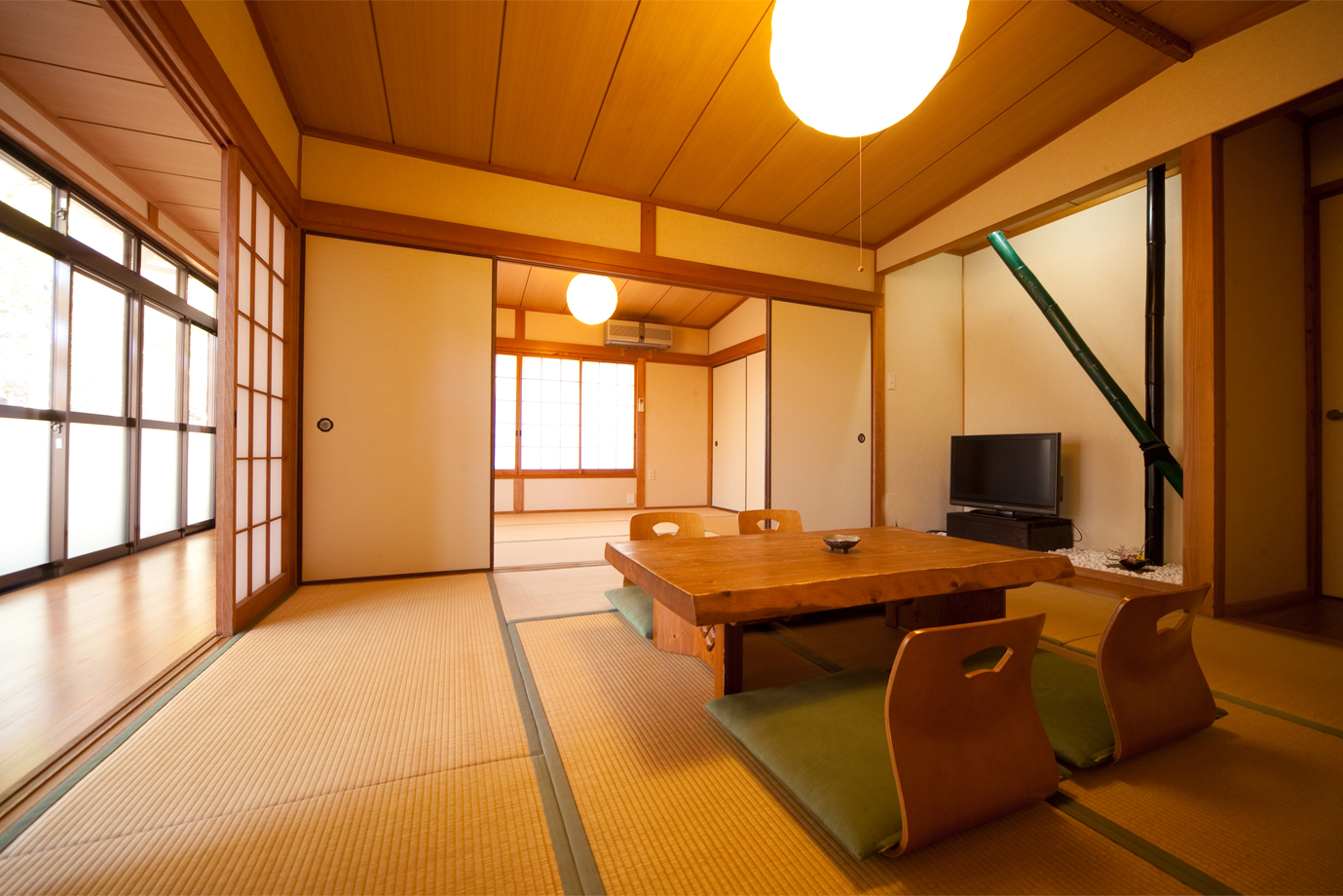 初めてで、出来るだけ早く着けるように細かく調べて速見ICを降りて高速道に沿う一般道を通って行きました。 フロントのある母屋は足を踏み入れた時に囲炉裏がありその雰囲気がとても素敵でホッとしました。露地を通って「ひいらぎ」のお部屋、素朴でしたが緑に囲まれて鳥のさ…